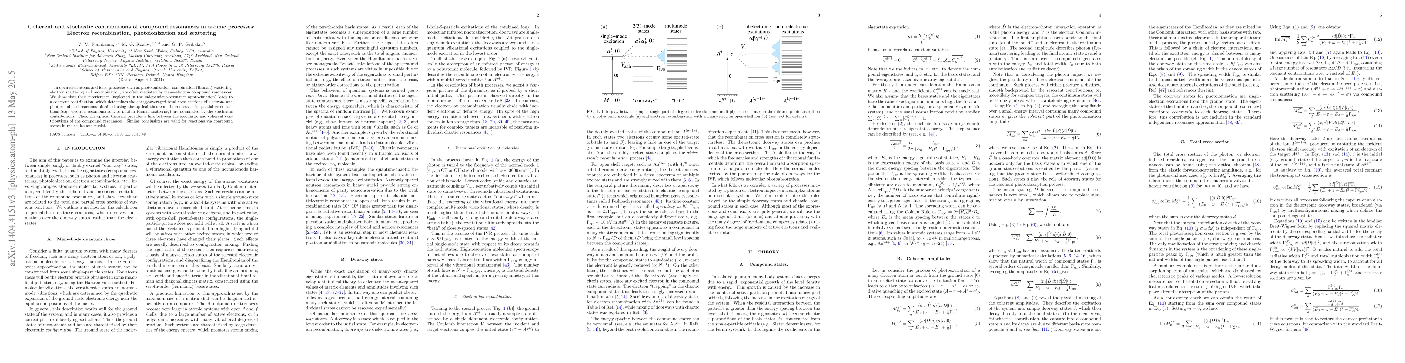 This paper investigates the roles of coherent and stochastic contributions from compound resonances in open-shell atoms and ions during processes like electron recombination, photoionization, and scattering. It finds that coherent interference affects energy-averaged total cross sections, while stochastic contributions dominate the partial cross sections.