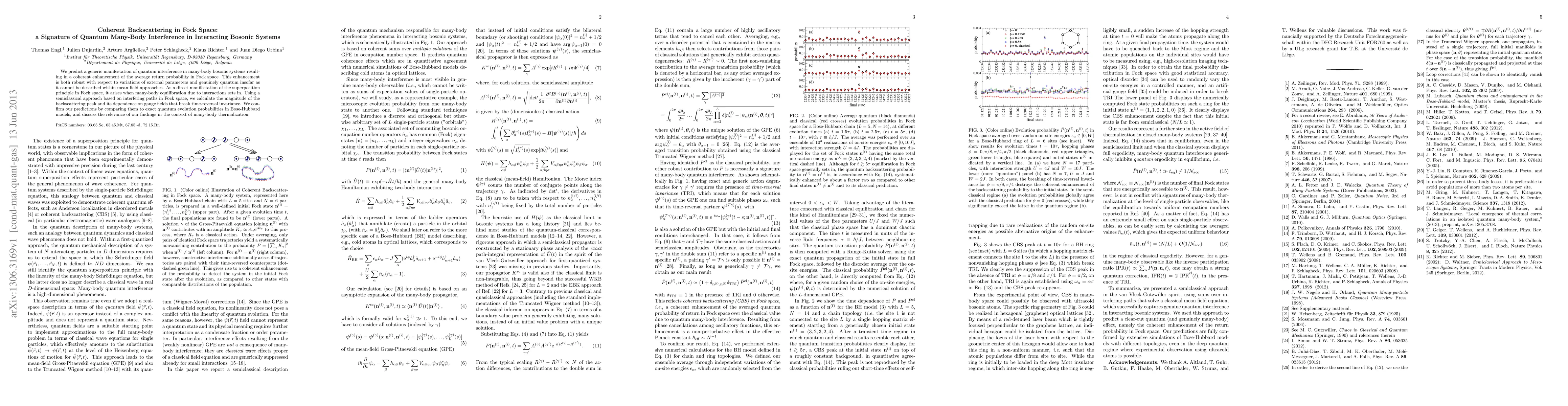 This paper predicts a coherent backscattering phenomenon in many-body bosonic systems, demonstrating quantum interference in Fock space that enhances the return probability. This effect is robust and cannot be explained by mean-field theories, highlighting the significance of quantum superposition and many-body equilibration.