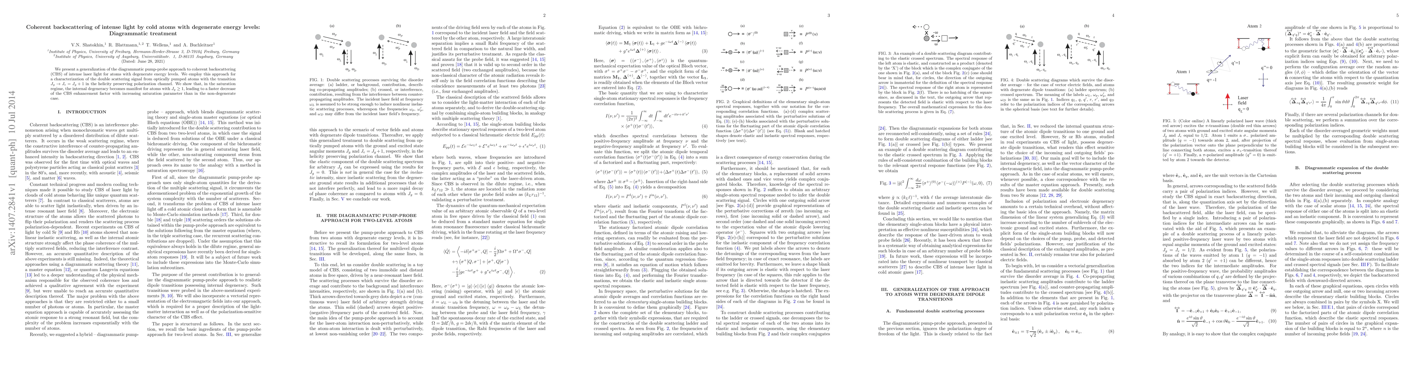 This paper generalizes the diagrammatic pump-probe method to study coherent backscattering of intense laser light by cold atoms with degenerate energy levels, revealing a faster decrease in the CBS enhancement factor due to internal degeneracy in atoms with $J_g\geq 1$ in the saturation regime.