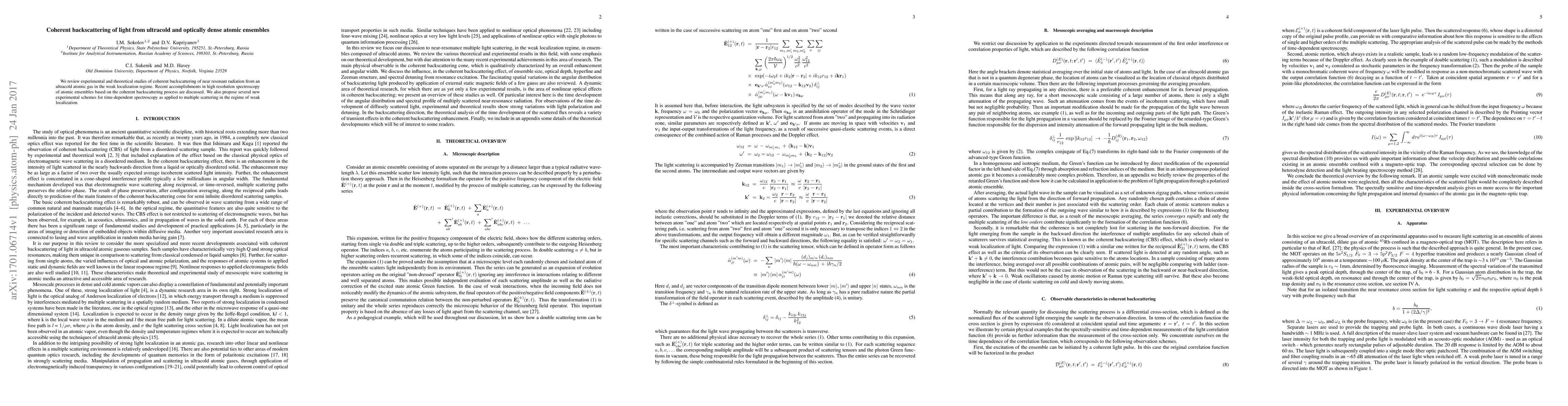 We review experimental and theoretical studies of coherent backscattering of near resonant radiation from an ultracold atomic gas in the weak localization regime. Recent accomplishments in high resolution spectroscopy of atomic ensembles based on the coherent backscattering process are discussed. We also propose several new experimental schemes for time-dependent spectroscopy as applied to multiple scattering in the regime of weak localization.