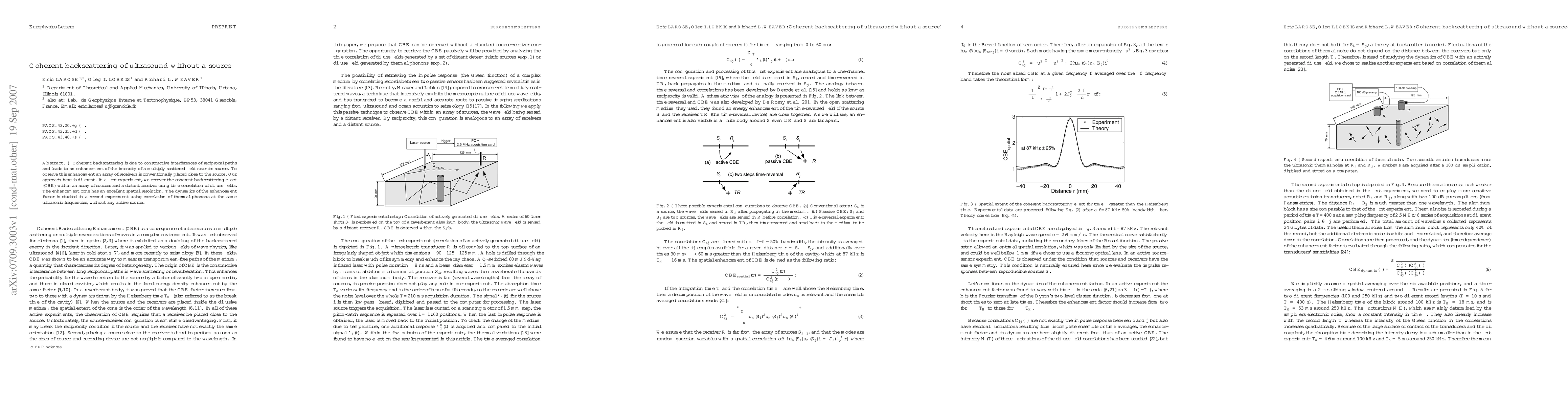 This paper demonstrates coherent backscattering of ultrasound without an active source, observing the effect through time correlation of diffuse fields and thermal phonons. The study reveals an enhancement cone with high spatial resolution and investigates the dynamics of the enhancement factor without conventional receiver placement near the source.