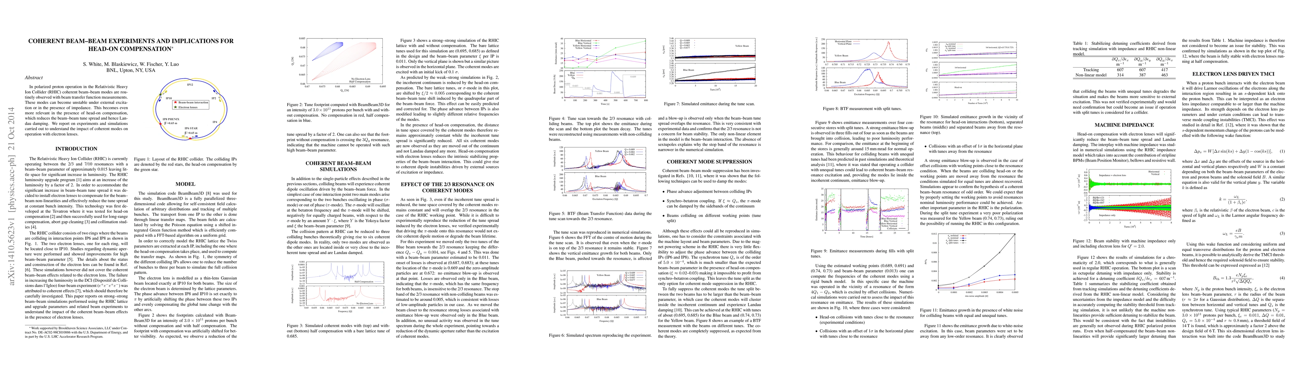 The research involves experiments and simulations at the Relativistic Heavy Ion Collider (RHIC) to understand the impact of coherent beam-beam modes on operation with electron lenses, particularly focusing on head-on compensation effects.