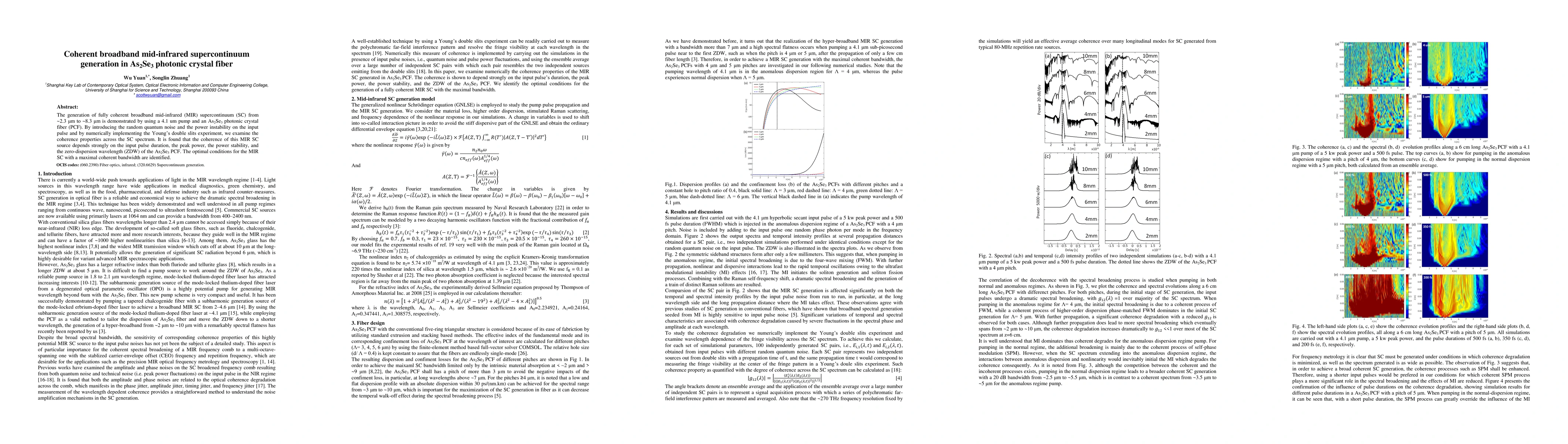 This research demonstrates coherent broadband mid-infrared supercontinuum generation from 2.3 to 8.3 µm using an As2Se3 photonic crystal fiber pumped at 4.1 µm. The study reveals that coherence properties depend on input pulse duration, peak power, stability, and the fiber's zero-dispersion wavelength, identifying optimal conditions for maximal coherent bandwidth.