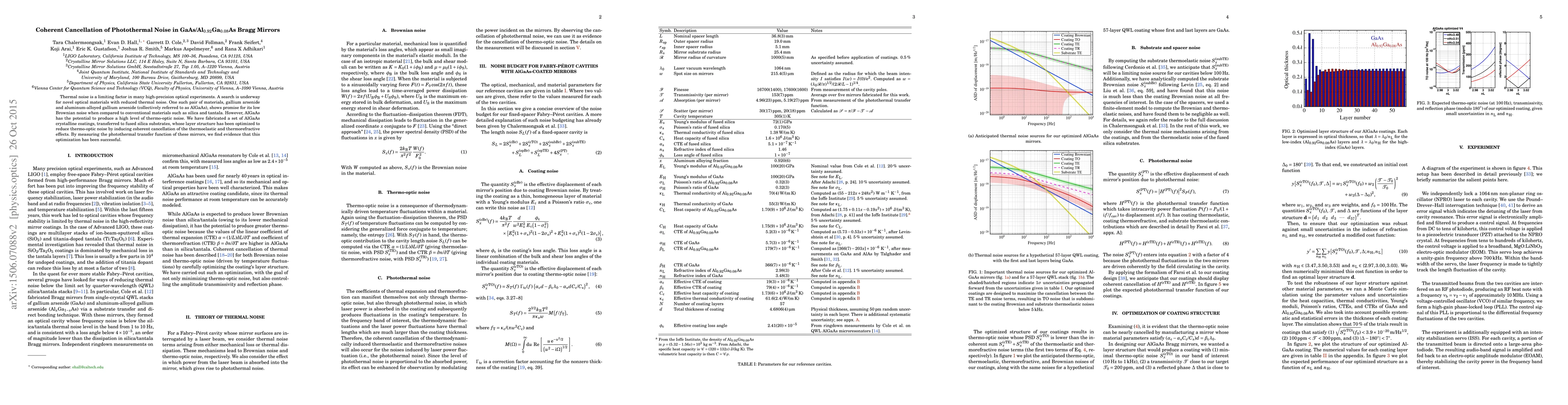 This paper investigates the fabrication of GaAs/Al$_{0.92}$Ga$_{0.08}$As Bragg mirrors optimized for coherent cancellation of photothermal noise, demonstrating reduced thermo-optic noise through a carefully structured layer design. Experimental results show successful minimization of thermal noise, promising for high-precision optical applications.
