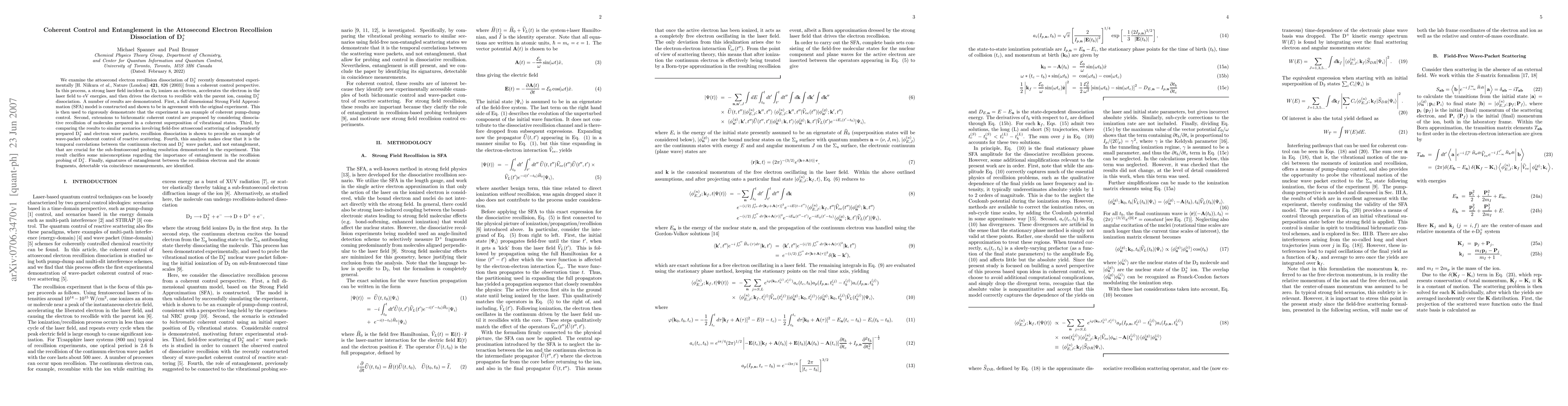 This paper investigates the attosecond electron recollision dissociation of D2+ from a coherent control perspective, demonstrating that the process exemplifies coherent pump-dump control and wave-packet coherent control. It clarifies that the temporal correlations, not entanglement, are key for the experiment's resolution, while identifying signatures of entanglement detectable via coincidence measurements.
