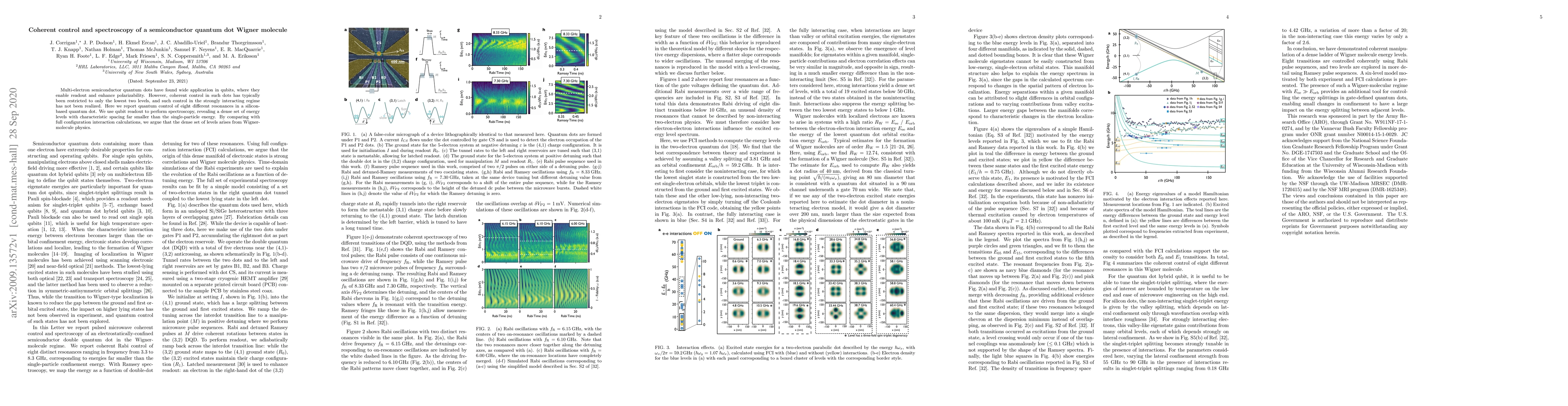 This paper reports quantum control of eight resonances in a silicon-based quantum dot, demonstrating coherent control in the strongly interacting regime. Spectroscopy reveals a dense set of energy levels attributed to Wigner-molecule physics, expanding the scope of coherent control beyond the lowest two levels.