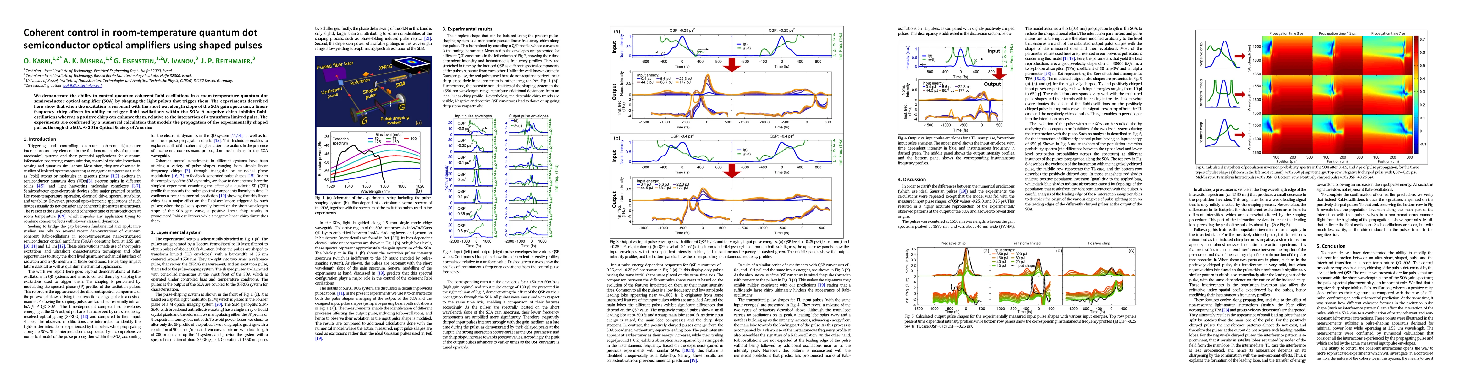 Development of a pulse-shaping technique to control Rabi-oscillations in room-temperature quantum dot SOAs, validated by both experiments and numerical calculations.