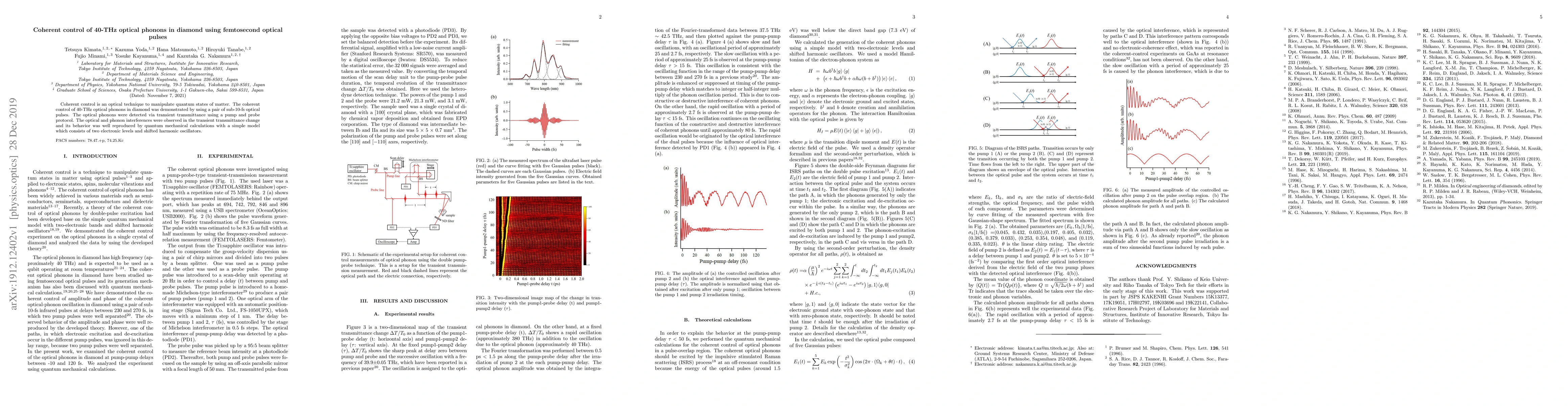 This paper demonstrates coherent control of 40-THz optical phonons in diamond using sub-10-fs optical pulses, observing optical and phonon interferences via transient transmittance, and validating the results with quantum mechanical calculations.