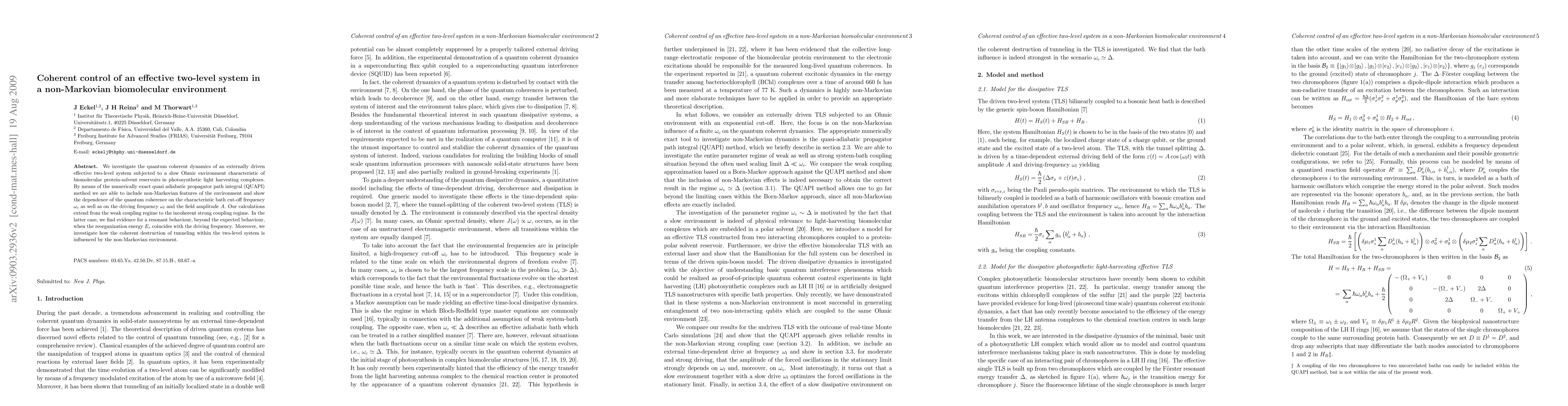 This paper explores the quantum coherent dynamics of a two-level system in a non-Markovian biomolecular environment using the QUAPI method, revealing resonant behavior when the reorganization energy matches the driving frequency and examining the impact of the environment on coherent tunneling destruction.
