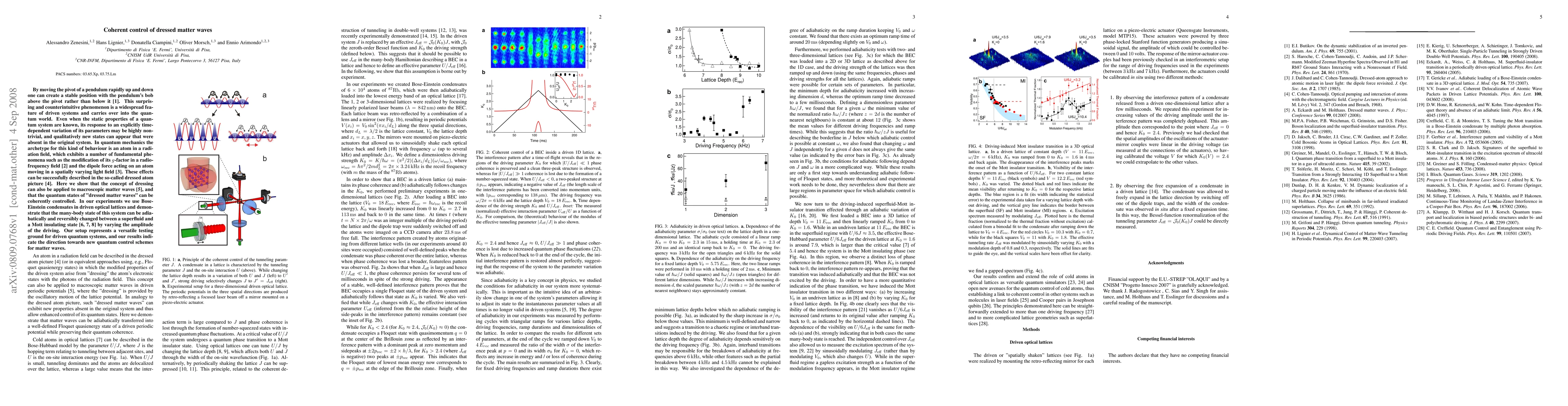 This paper demonstrates coherent control of "dressed matter waves" using Bose-Einstein condensates in driven optical lattices, showing reversible transitions between superfluid and Mott insulating states by varying driving parameters. The findings provide a versatile platform for exploring driven quantum systems and suggest new quantum control methods for matter waves.