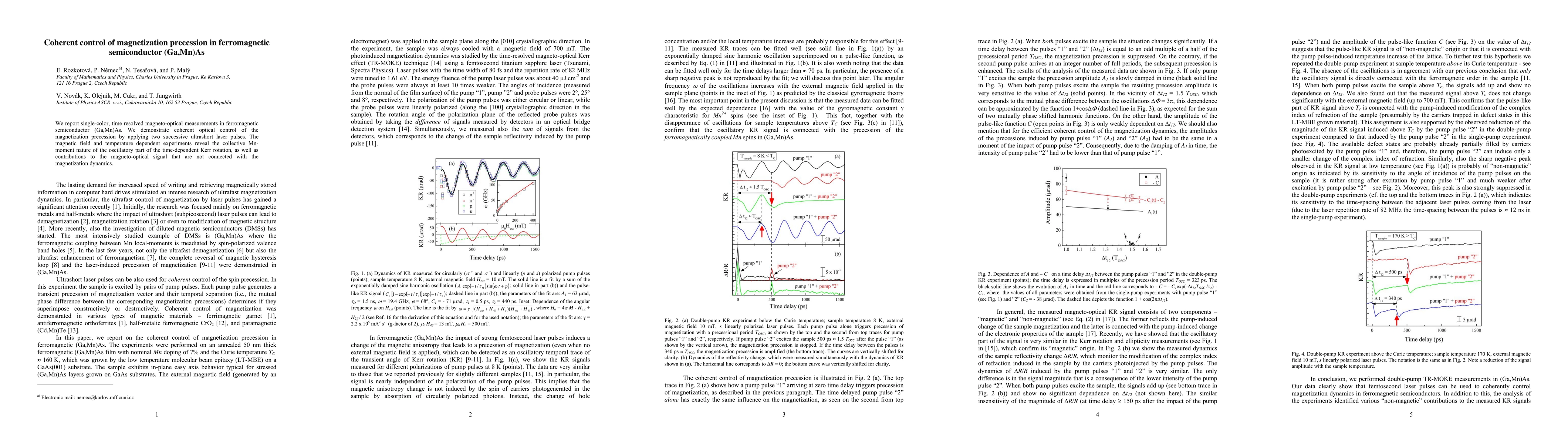 This paper demonstrates coherent optical control of magnetization precession in (Ga,Mn)As using ultrashort laser pulses, revealing the collective Mn-moment nature of the oscillatory Kerr rotation and identifying non-dynamical contributions to the magneto-optical signal.