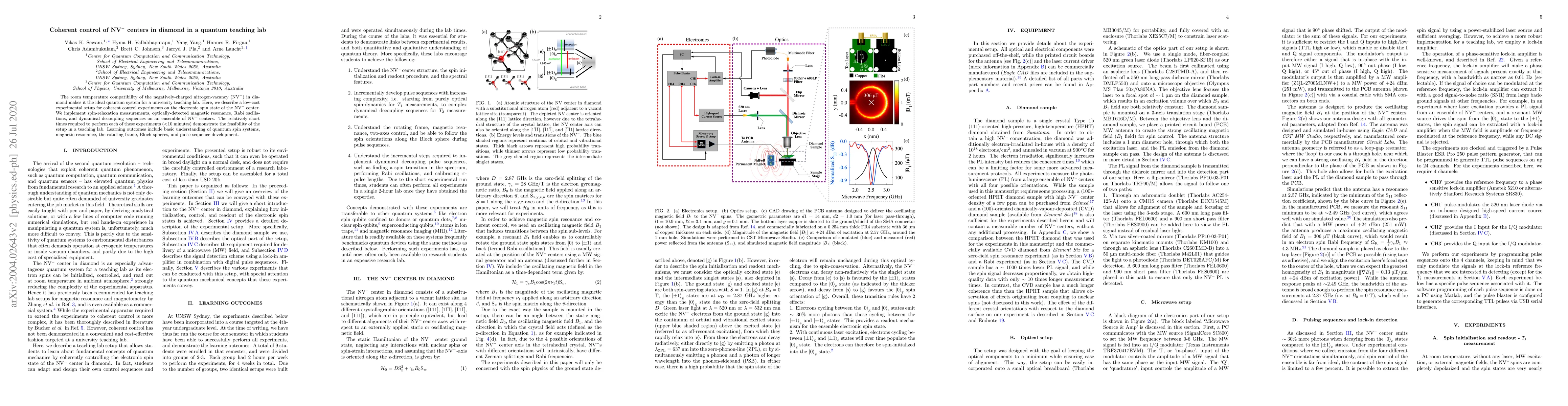 Researchers developed a low-cost experimental setup to study NV centers in diamond, enabling coherent control experiments that can be performed within 10 minutes, making it suitable for university teaching labs.