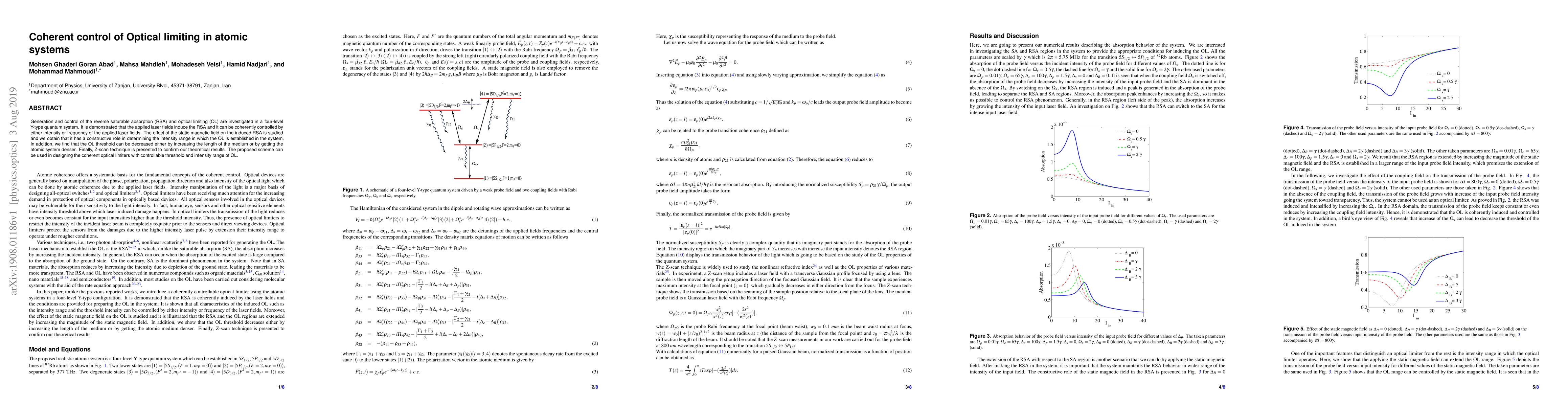 Researchers developed a method to coherently control optical limiting in atomic systems using reverse saturable absorption, which can be controlled by laser intensity or frequency. The findings could lead to designing controllable optical limiters with adjustable threshold and intensity range.