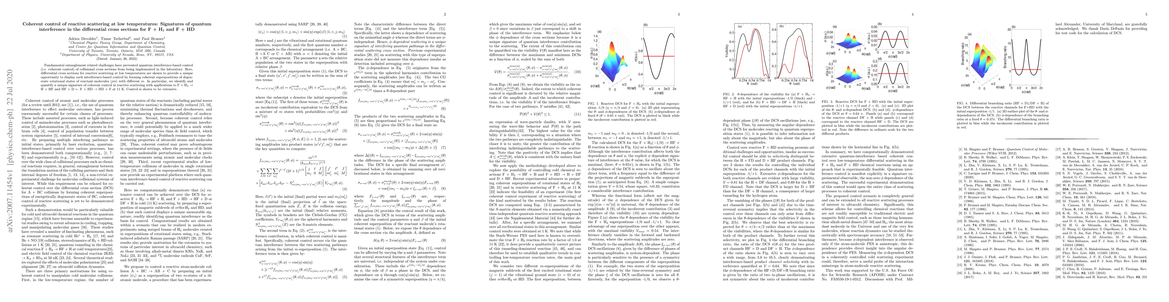 This paper demonstrates the successful implementation of coherent control in reactive scattering at low temperatures, revealing quantum interference signatures in differential cross sections for F + H2 and F + HD reactions. The study identifies and quantifies unique signatures of coherent control in the scattering processes at 11 K, showcasing the potential for extensive control.