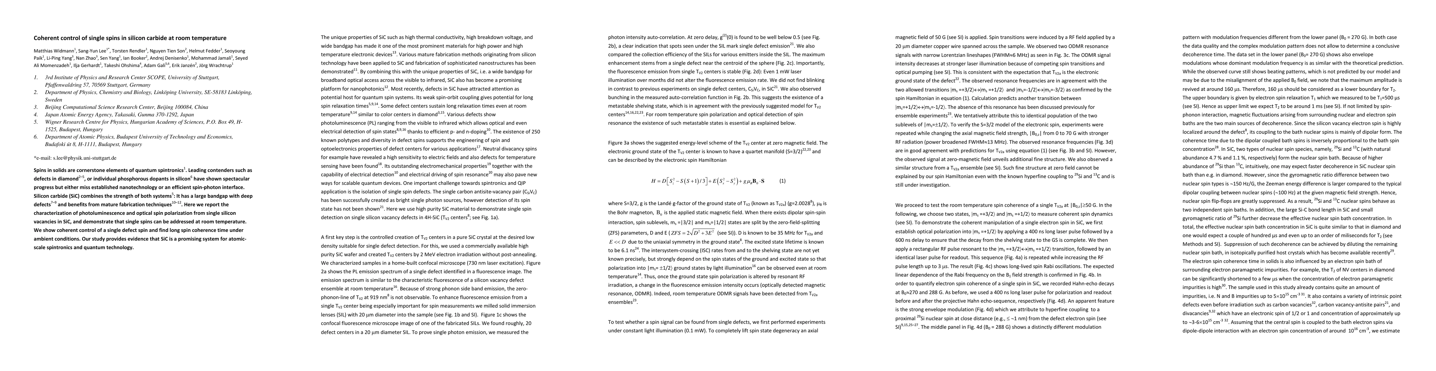 This paper investigates single silicon vacancies in silicon carbide (SiC) and demonstrates coherent control of these spins at room temperature, showing long spin coherence times and promising potential for atomic-scale spintronics and quantum technology applications.