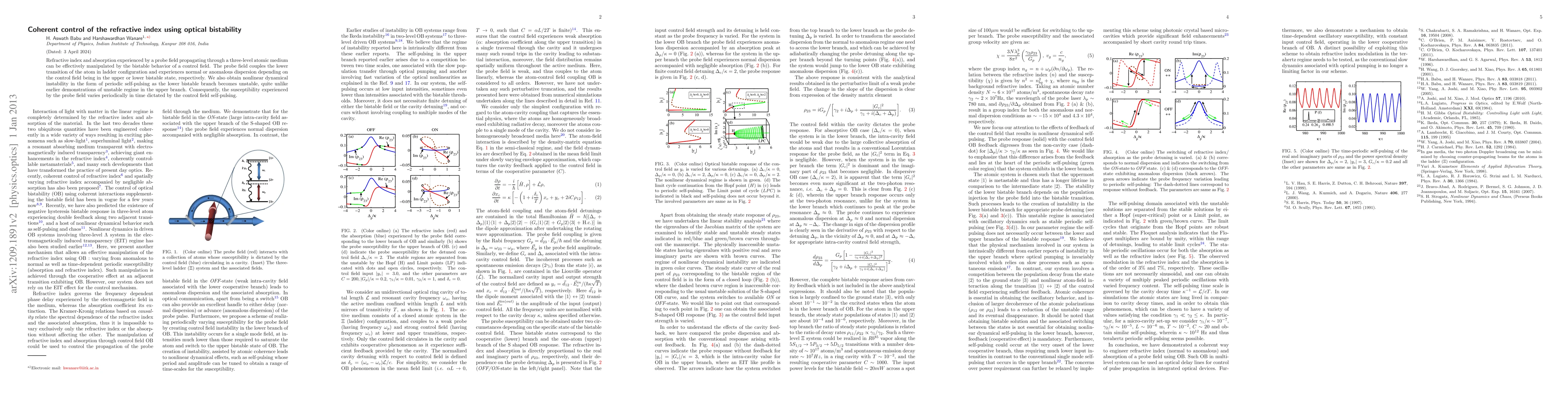This paper demonstrates coherent control of a probe field's refractive index through optical bistability in a three-level atomic medium, showing normal or anomalous dispersion based on the control field's bistable state. It also introduces nonlinear dynamical instability with periodic self-pulsing when the lower bistable branch becomes unstable.