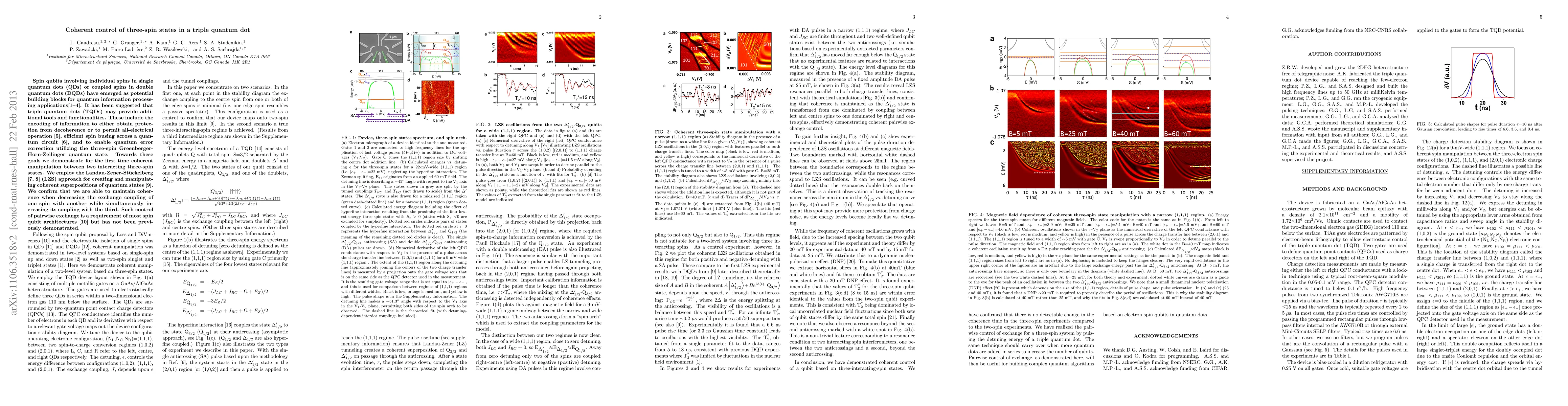 This research demonstrates the first coherent control of two interacting three-spin states in a triple quantum dot using the Landau-Zener-Stückelberg approach. The study successfully maintains coherence while manipulating the exchange coupling between individual spins, showcasing potential for quantum error correction and all-electrical operations.