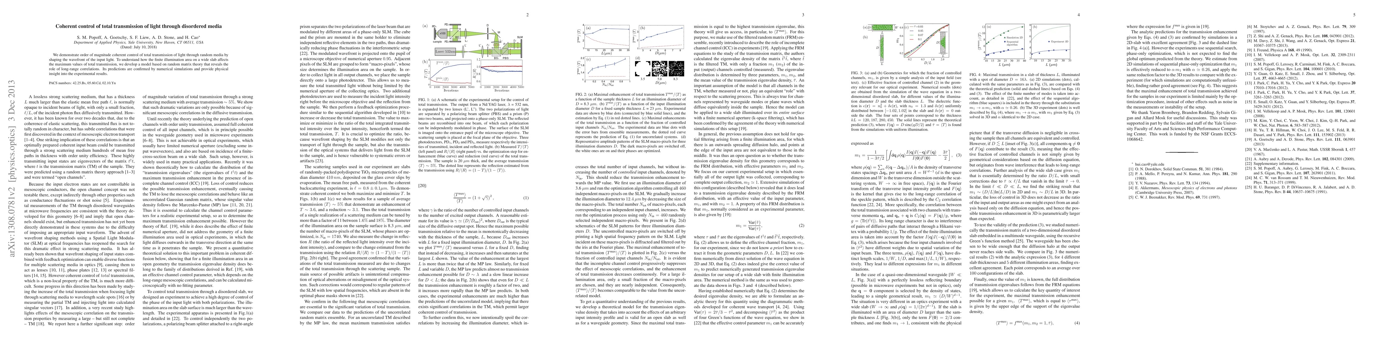 Researchers demonstrate coherent control of light transmission through disordered media by shaping input wavefronts, and develop a model based on random matrix theory to understand the effects of finite illumination areas.
