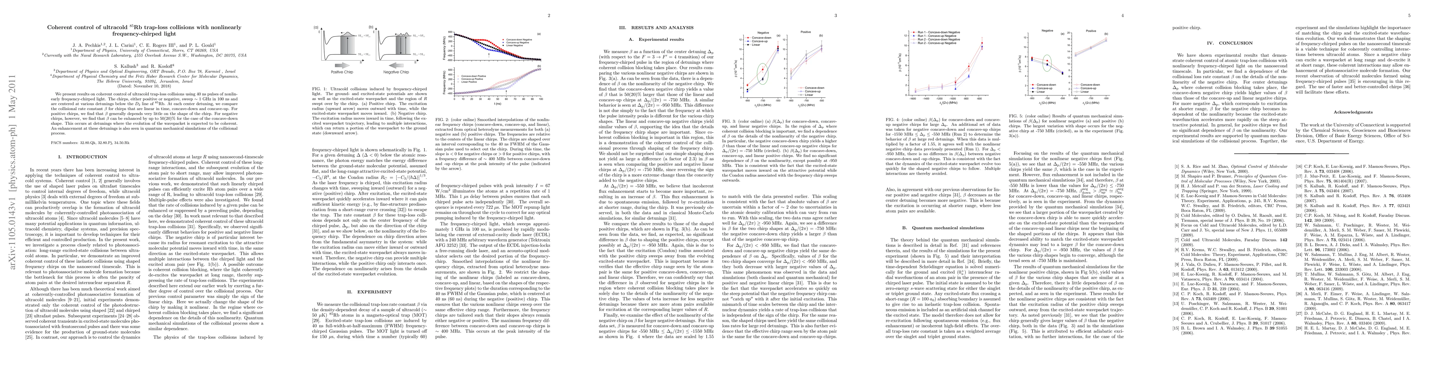 This paper investigates the coherent control of ultracold 85Rb trap-loss collisions using nonlinearly frequency-chirped light pulses. It finds that negative chirps can enhance collision rates by up to 50(20)% when the wavepacket evolution is coherent, as confirmed by quantum mechanical simulations.