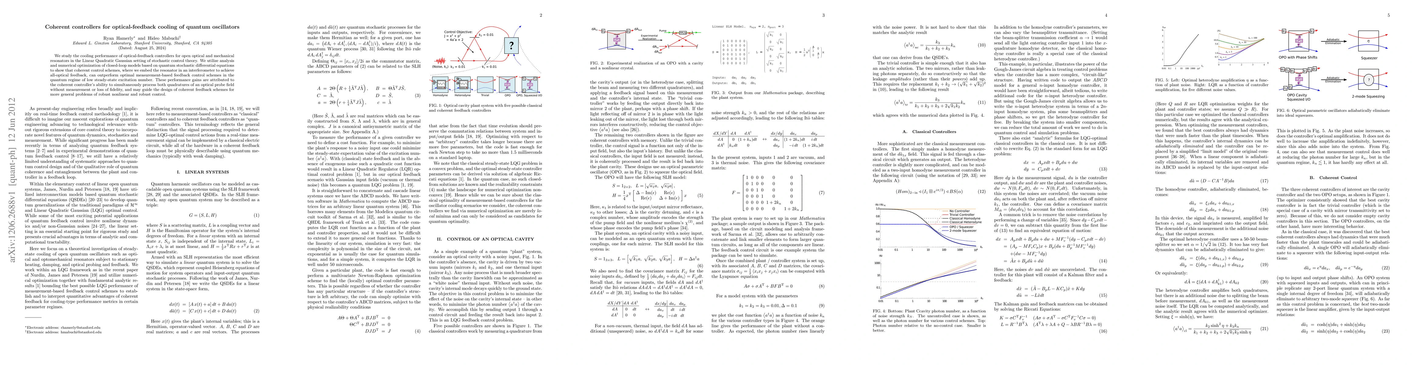 This paper investigates the effectiveness of coherent optical-feedback controllers for cooling quantum oscillators, demonstrating that these controllers outperform traditional measurement-based feedback in the quantum regime. The superior performance is due to the coherent controller's ability to process both quadratures of an optical field without loss, suggesting potential for broader applications in robust control.