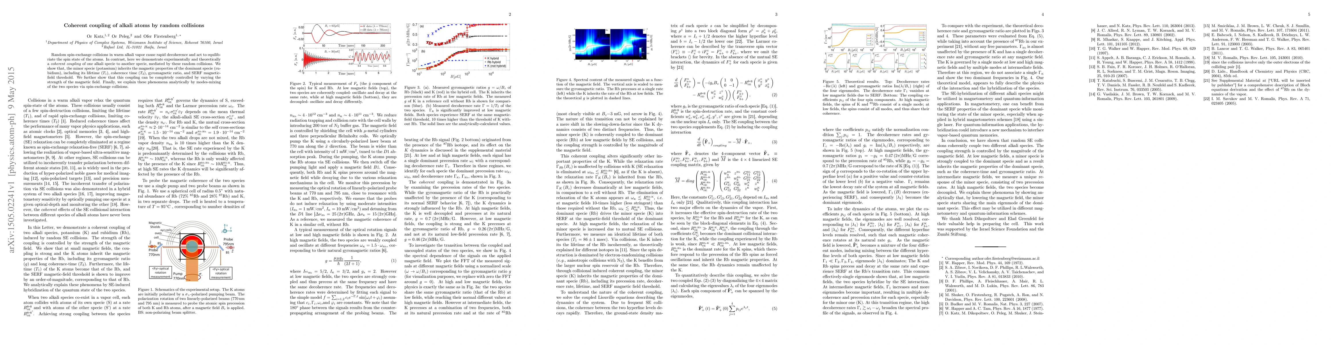 This paper demonstrates coherent coupling between two alkali species (potassium and rubidium) via random spin-exchange collisions, where the minor species inherits the magnetic properties of the dominant species. This coupling can be controlled by magnetic field strength and is explained through analytical models of modes-mixing.
