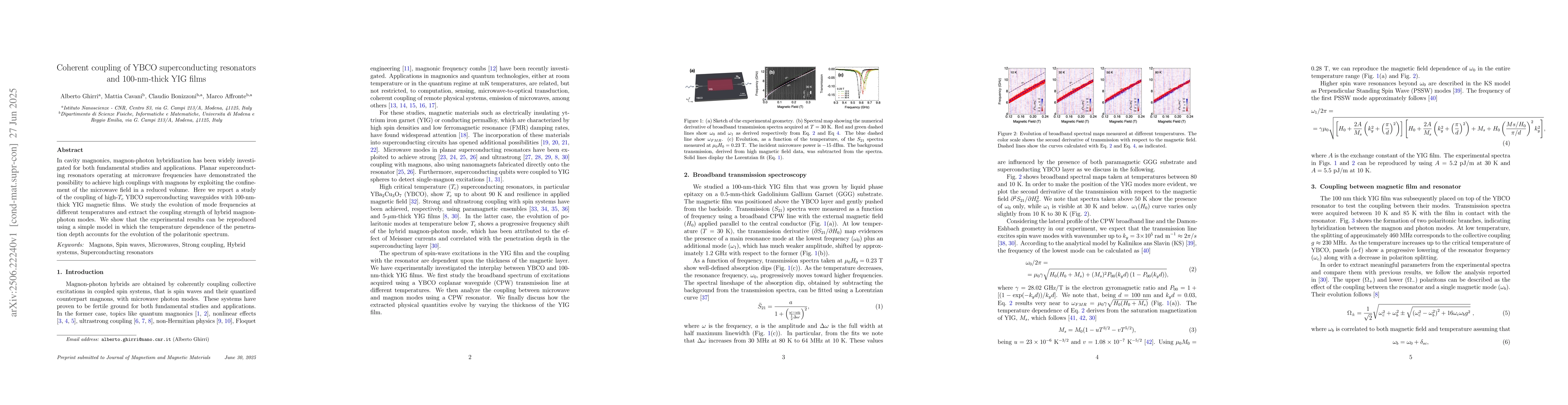 In cavity magnonics, magnon-photon hybridization has been widely investigated for both fundamental studies and applications. Planar superconducting resonators operating at microwave frequencies have demonstrated the possibility to achieve high couplings with magnons by exploiting the confinement of the microwave field in a reduced volume. Here we report a study of the coupling of high-Tc YBCO superconducting waveguides with 100-nm-thick YIG magnetic films. We study the evolution of mode frequencies at different temperatures and extract the coupling strength of hybrid magnon-photon modes. We show that the experimental results can be reproduced using a simple model in which the temperature dependence of the penetration depth accounts for the evolution of the polaritonic spectrum.