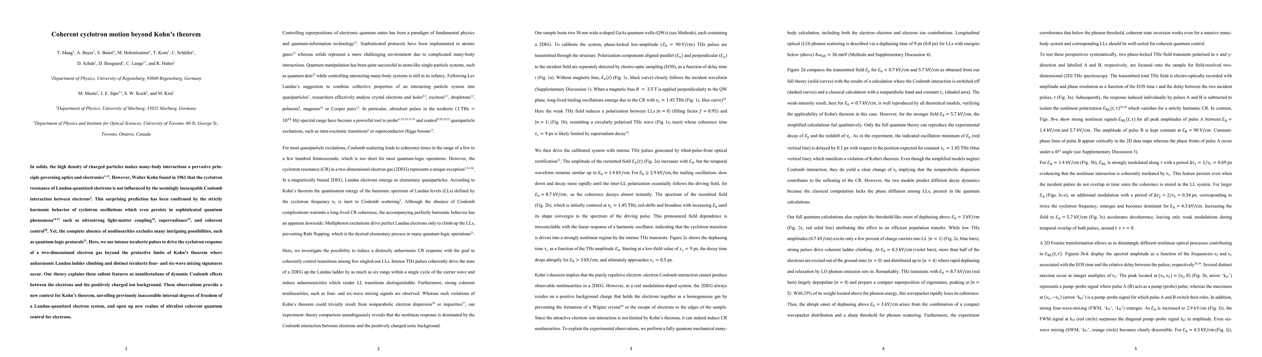 In solids, the high density of charged particles makes many-body interactions a pervasive principle governing optics and electronics[1-12]. However, Walter Kohn found in 1961 that the cyclotron resonance of Landau-quantized electrons is independent of the seemingly inescapable Coulomb interaction between electrons[2]. While this surprising theorem has been exploited in sophisticated quantum phenomena[13-15] such as ultrastrong light-matter coupling[16], superradiance[17], and coherent control[18], the complete absence of nonlinearities excludes many intriguing possibilities, such as quantum-logic protocols[19]. Here, we use intense terahertz pulses to drive the cyclotron response of a two-dimensional electron gas beyond the protective limits of Kohn's theorem. Anharmonic Landau ladder climbing and distinct terahertz four- and six-wave mixing signatures occur, which our theory links to dynamic Coulomb effects between electrons and the positively charged ion background. This new context for Kohn's theorem unveils previously inaccessible internal degrees of freedom of Landau electrons, opening up new realms of ultrafast quantum control for electrons.