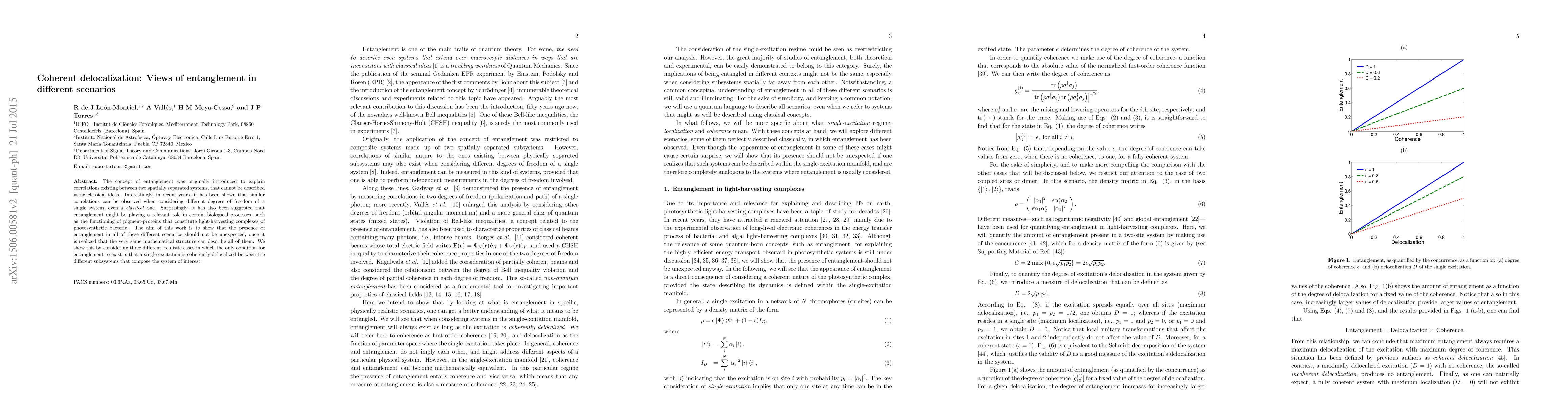 The concept of entanglement was originally introduced to explain correlations existing between two spatially separated systems, that cannot be described using classical ideas. Interestingly, in recent years, it has been shown that similar correlations can be observed when considering different degrees of freedom of a single system, even a classical one. Surprisingly, it has also been suggested that entanglement might be playing a relevant role in certain biological processes, such as the functioning of pigment-proteins that constitute light-harvesting complexes of photosynthetic bacteria. The aim of this work is to show that the presence of entanglement in all of these different scenarios should not be unexpected, once it is realized that the very same mathematical structure can describe all of them. We show this by considering three different, realistic cases in which the only condition for entanglement to exist is that a single excitation is coherently delocalized between the different subsystems that compose the system of interest.