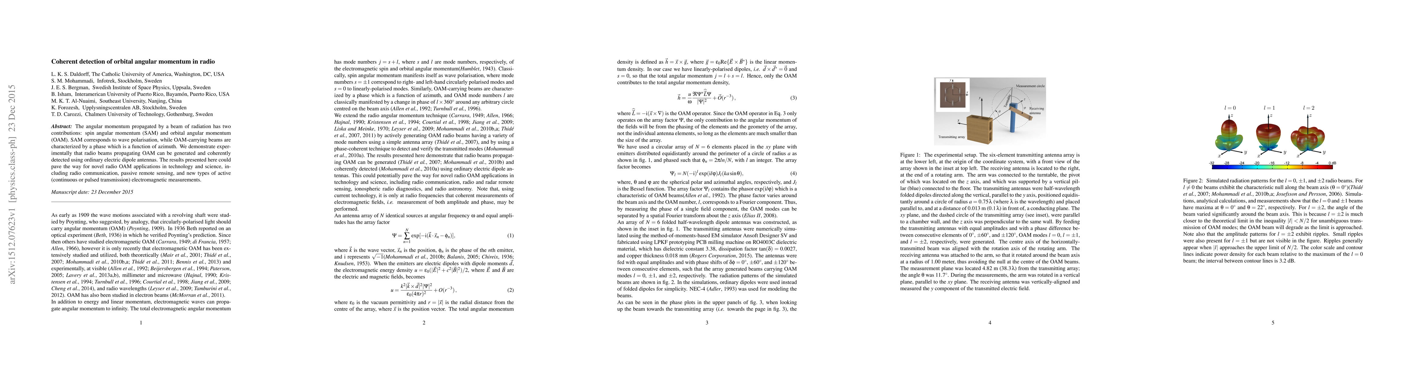 This paper demonstrates the generation and coherent detection of orbital angular momentum in radio waves using standard electric dipole antennas, potentially enabling new applications in radio communication and remote sensing. The findings highlight the feasibility of utilizing radio beams with OAM for advanced electromagnetic measurements.