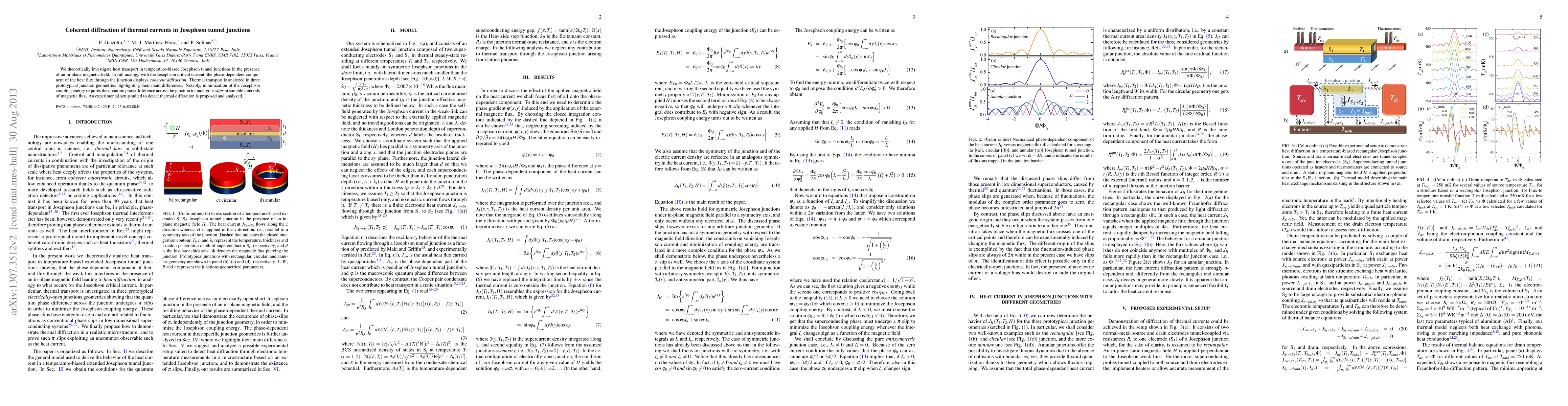 This paper theoretically explores heat transport in temperature-biased Josephson tunnel junctions under an in-plane magnetic field, revealing coherent diffraction analogous to the Josephson critical current. It proposes an experimental setup to detect thermal diffraction and analyzes three junction geometries, noting \pi-slips in the quantum phase difference.