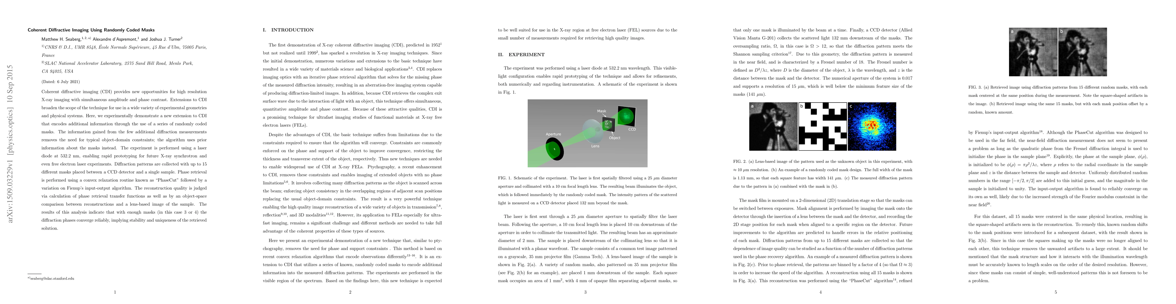 Coherent diffractive imaging (CDI) provides new opportunities for high resolution X-ray imaging with simultaneous amplitude and phase contrast. Extensions to CDI broaden the scope of the technique for use in a wide variety of experimental geometries and physical systems. Here, we experimentally demonstrate a new extension to CDI that encodes additional information through the use of a series of randomly coded masks. The information gained from the few additional diffraction measurements removes the need for typical object-domain constraints; the algorithm uses prior information about the masks instead. The experiment is performed using a laser diode at 532.2 nm, enabling rapid prototyping for future X-ray synchrotron and even free electron laser experiments. Diffraction patterns are collected with up to 15 different masks placed between a CCD detector and a single sample. Phase retrieval is performed using a convex relaxation routine known as "PhaseCut" followed by a variation on Fienup's input-output algorithm. The reconstruction quality is judged via calculation of phase retrieval transfer functions as well as by an object-space comparison between reconstructions and a lens-based image of the sample. The results of this analysis indicate that with enough masks (in this case 3 or 4) the diffraction phases converge reliably, implying stability and uniqueness of the retrieved solution.