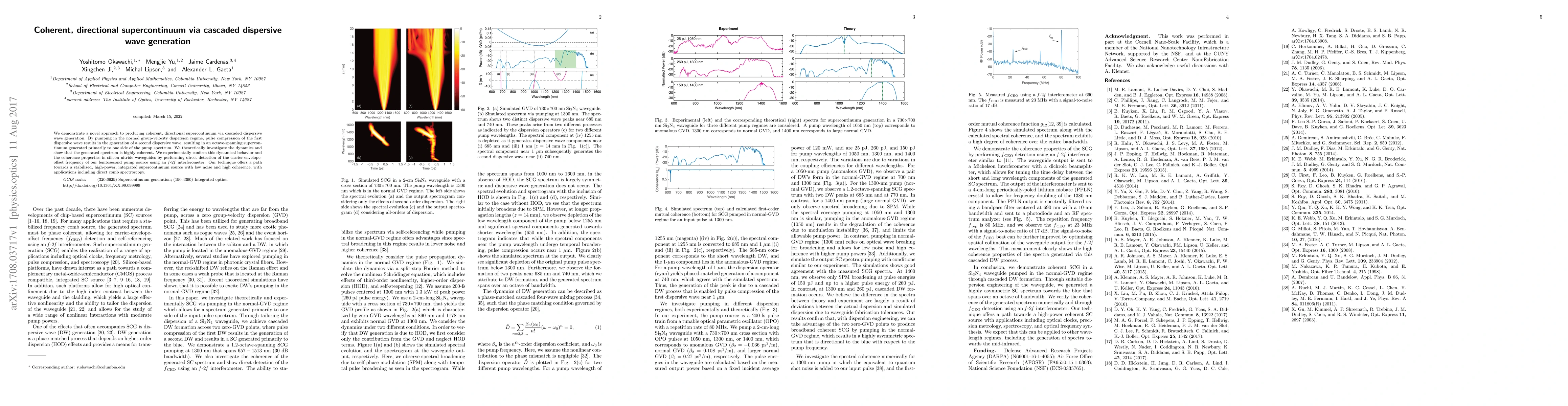 This paper presents a novel method for generating a coherent, directional supercontinuum through cascaded dispersive wave generation in silicon nitride waveguides. The technique involves pulse compression in the normal group-velocity dispersion regime, leading to an octave-spanning supercontinuum with high coherence, confirmed both theoretically and experimentally.