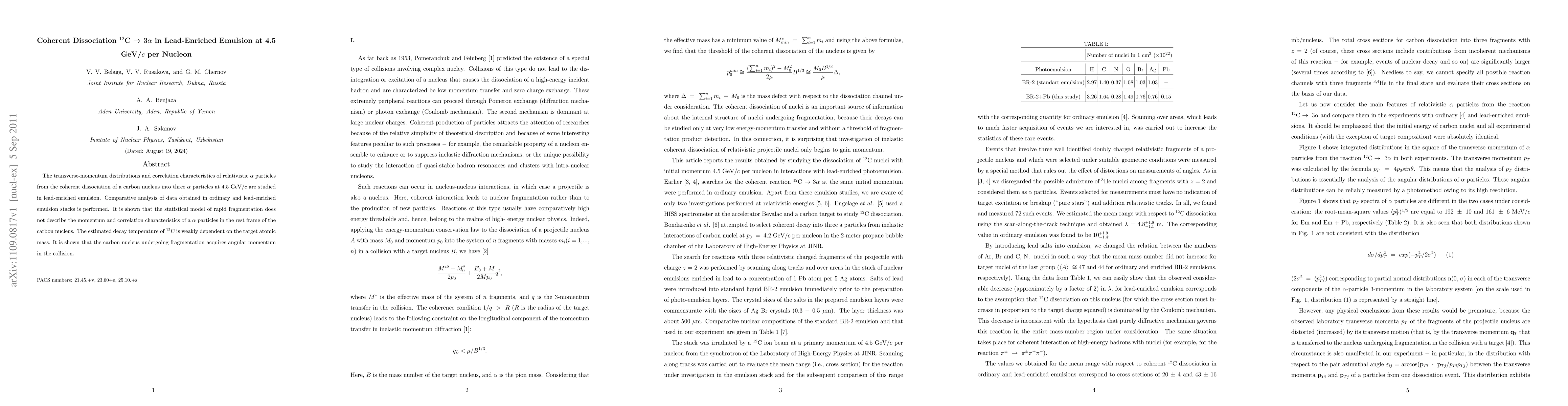 The transverse-momentum distributions and correlation characteristics of relativistic $\alpha$ particles from the coherent dissociation of a carbon nucleus into three $\alpha$ particles at 4.5 GeV/$c$ are studied in lead-enriched emulsion. Comparative analysis of data obtained in ordinary and lead-enriched emulsion stacks is performed. It is shown that the statistical model of rapid fragmentation does not describe the momentum and correlation characteristics of a $\alpha$ particles in the rest frame of the carbon nucleus. The estimated decay temperature of $^{12}$C is weakly dependent on the target atomic mass. It is shown that the carbon nucleus undergoing fragmentation acquires angular momentum in the collision.