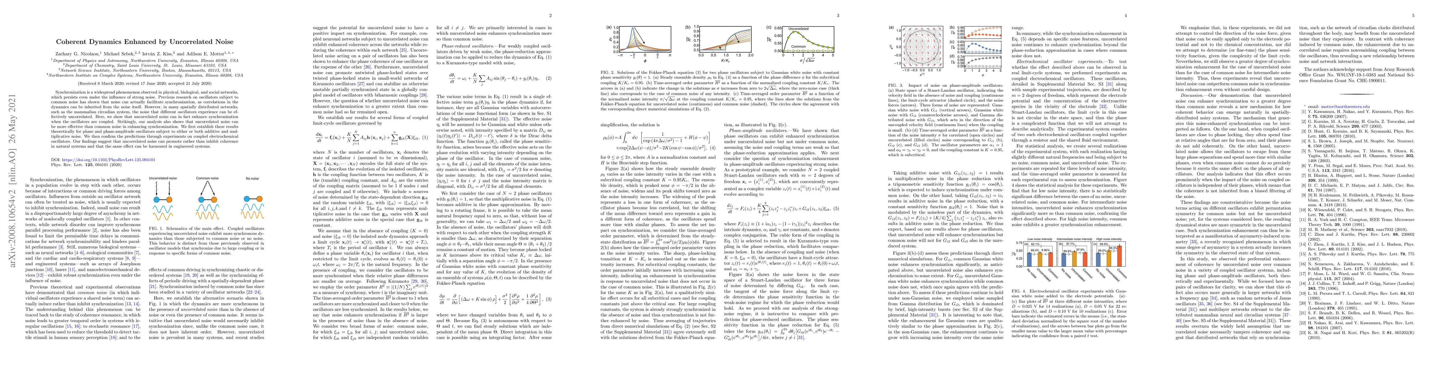 Synchronization is a widespread phenomenon observed in physical, biological, and social networks, which persists even under the influence of strong noise. Previous research on oscillators subject to common noise has shown that noise can actually facilitate synchronization, as correlations in the dynamics can be inherited from the noise itself. However, in many spatially distributed networks, such as the mammalian circadian system, the noise that different oscillators experience can be effectively uncorrelated. Here, we show that uncorrelated noise can in fact enhance synchronization when the oscillators are coupled. Strikingly, our analysis also shows that uncorrelated noise can be more effective than common noise in enhancing synchronization. We first establish these results theoretically for phase and phase-amplitude oscillators subject to either or both additive and multiplicative noise. We then confirm the predictions through experiments on coupled electrochemical oscillators. Our findings suggest that uncorrelated noise can promote rather than inhibit coherence in natural systems and that the same effect can be harnessed in engineered systems.