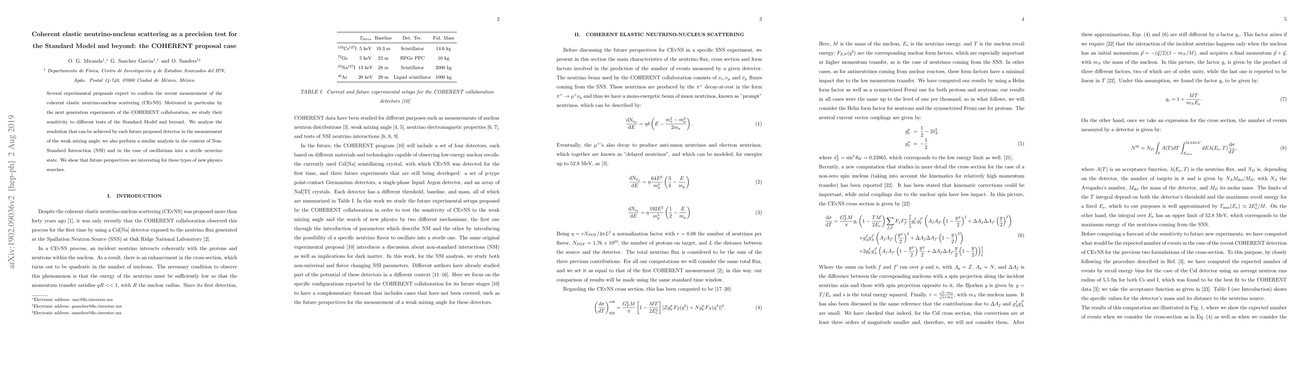 The COHERENT collaboration aims to confirm the recent discovery of coherent elastic neutrino-nucleus scattering (CEvNS) and explore its potential for precision tests of the Standard Model and beyond, including Non-Standard Interactions and sterile neutrino oscillations. The study highlights the promising sensitivity of future detectors to these new physics scenarios.