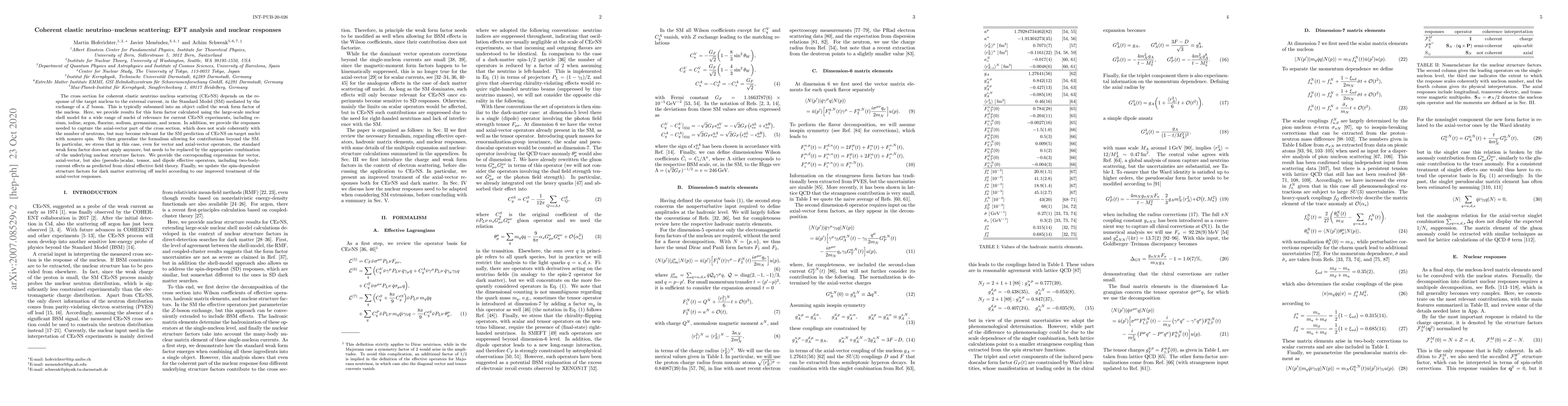 Researchers developed a new framework for calculating coherent elastic neutrino-nucleus scattering, including improved nuclear responses and effective operators beyond the Standard Model.