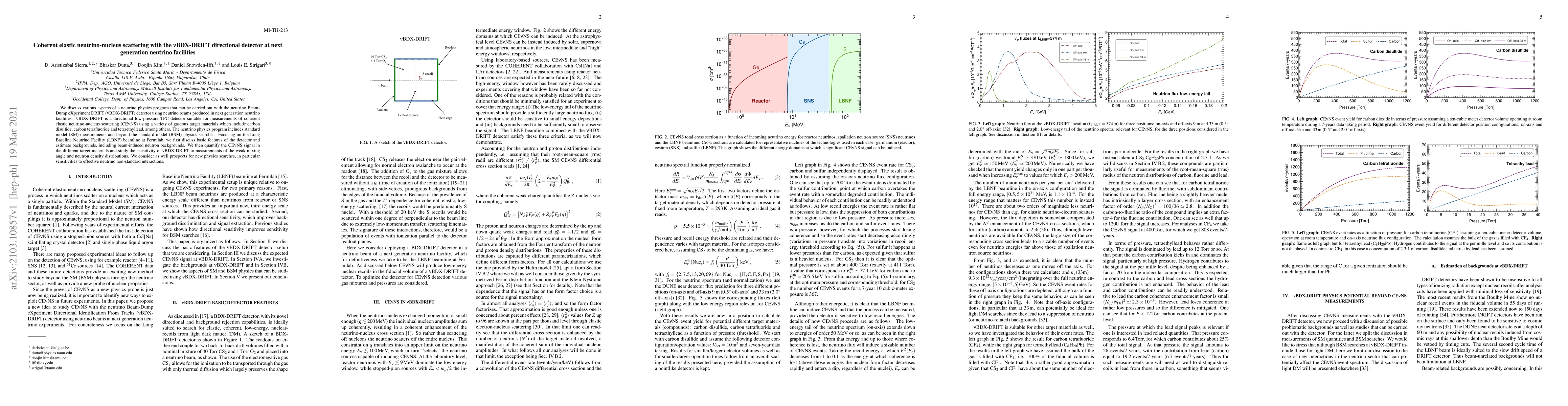 This paper explores the capabilities of the $\nu$BDX-DRIFT directional detector for coherent elastic neutrino-nucleus scattering (CE$\nu$NS) measurements at next-generation neutrino facilities, focusing on the Long Baseline Neutrino Facility (LBNF) at Fermilab. The detector's sensitivity to standard model and beyond-standard model physics is evaluated, including potential new physics searches for non-standard neutrino interactions.
