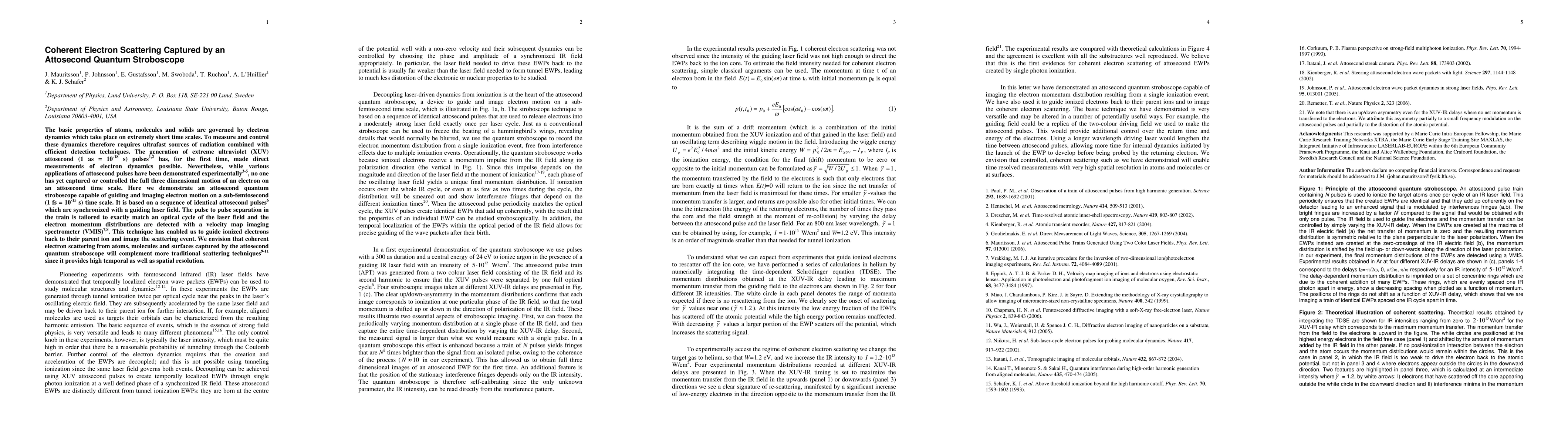 This paper presents an attosecond quantum stroboscope technique that captures and controls the three-dimensional motion of electrons on sub-femtosecond timescales using synchronized attosecond pulses and a guiding laser field. This method enables imaging of coherent electron scattering events, offering high temporal and spatial resolution to complement traditional scattering techniques.