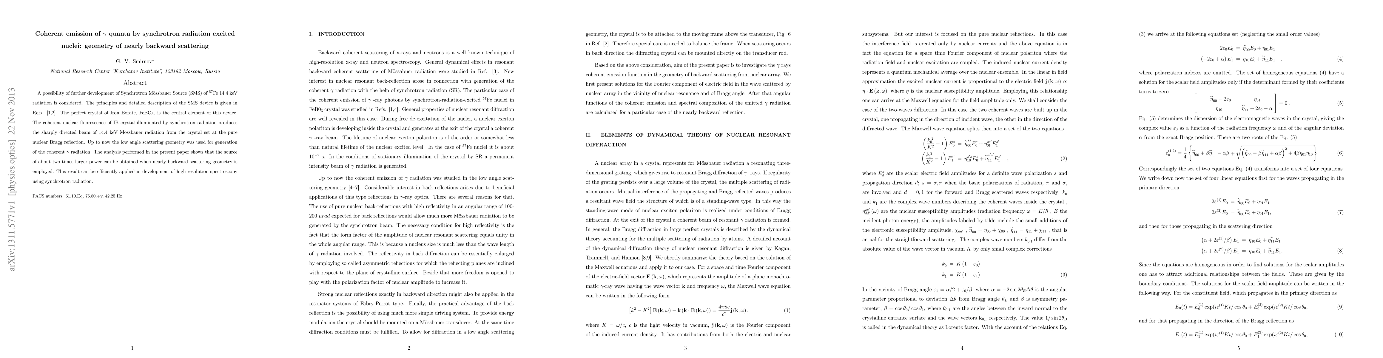 This paper explores the enhanced coherent emission of 14.4 keV gamma quanta from a synchrotron-excited Synchrotron Mössbauer Source (SMS) using nearly backward scattering geometry, potentially doubling the power output compared to low angle scattering methods. This advancement could significantly improve high-resolution spectroscopy utilizing synchrotron radiation.