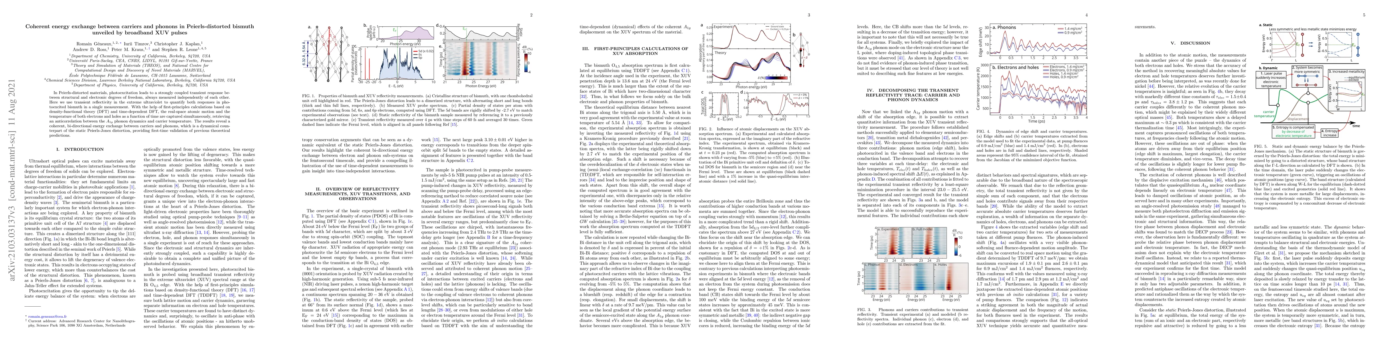 This study uses transient reflectivity in extreme ultraviolet to simultaneously measure the structural and electronic responses in photoexcited bismuth, revealing a coherent, bi-directional energy exchange between carriers and phonons, validating theoretical predictions of the Peierls-Jones distortion.