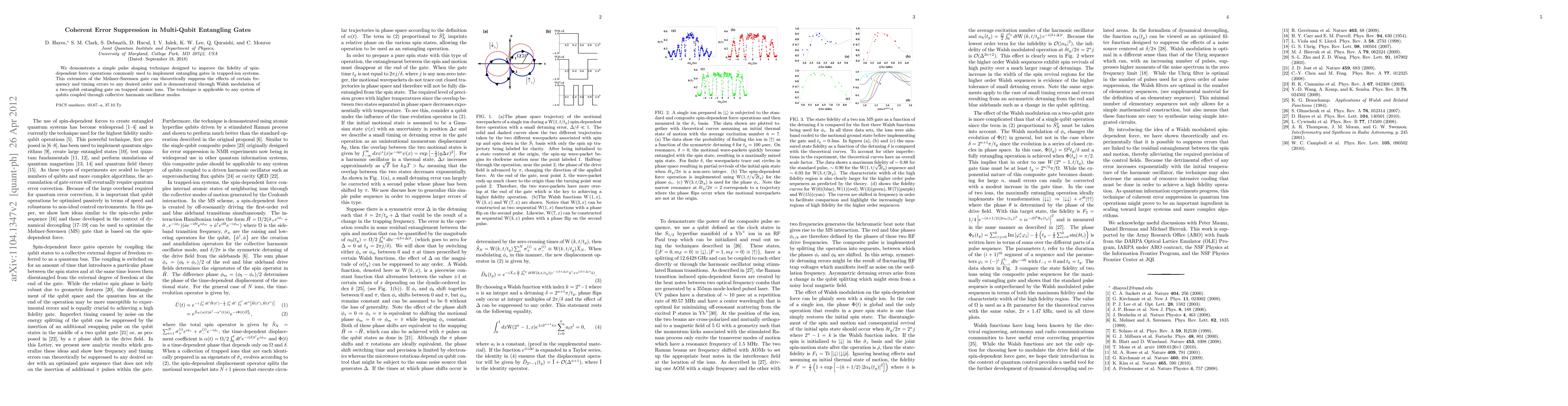 This paper presents a pulse shaping technique to enhance the fidelity of entangling gates in trapped-ion systems by suppressing coherent errors. Demonstrated through Walsh modulation, the method extends the M{\o}lmer-S{\o}rensen gate and is theoretically capable of mitigating frequency and timing errors to any desired order.
