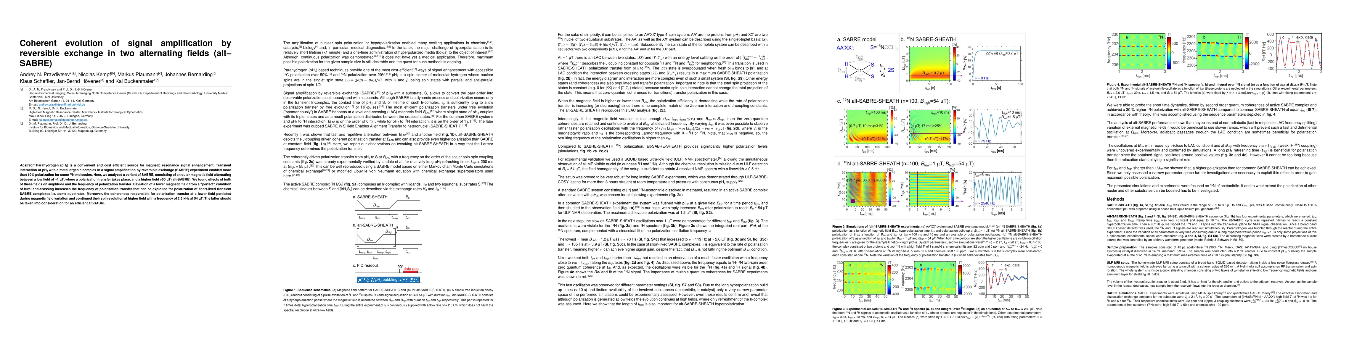 Parahydrogen (pH2) is a convenient and cost efficient source for magnetic resonance signal enhancement. Transient interaction of pH2 with a metal organic complex in a signal amplification by reversible exchange (SABRE) experiment enabled more than 10% polarization for some 15N molecules. Here, we analyzed a variant of SABRE, consisting of an outer magnetic field alternating between a low field of ~1 \muT, where a polarization transfer takes place, and a higher field >50 \muT (alt-SABRE). We found effects of both of these fields on amplitude and the frequency of polarization transfer. Deviation of a lower magnetic field from a "perfect" condition of level anti-crossing increases the frequency of polarization transfer that can be exploited for polarization of short-lived transient SABRE complexes i.e. some substrates. Moreover, the coherences responsible for polarization transfer at a lower field persisted during magnetic field variation and continued their spin evolution at higher field with a frequency of 2.5 kHz at 54 \muT. The latter should be taken into consideration for an efficient alt-SABRE.