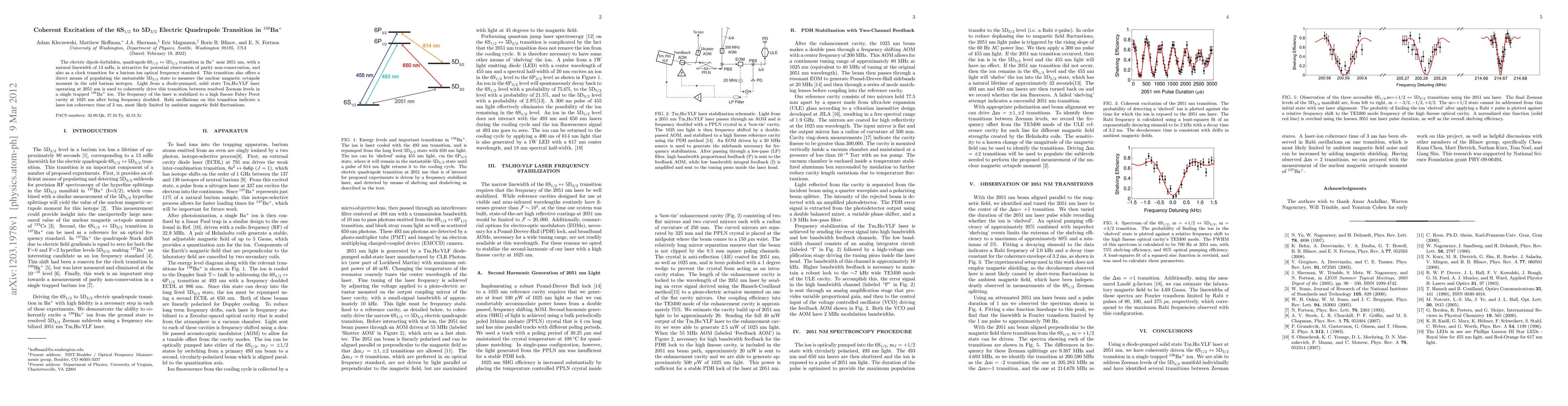 This paper reports the coherent excitation of a forbidden quadrupole transition in 138Ba+ using a diode-pumped laser, enabling potential parity non-conservation observations and clock applications. The laser-driven Rabi oscillations demonstrate a coherence time of 3 ms, primarily limited by magnetic field fluctuations.