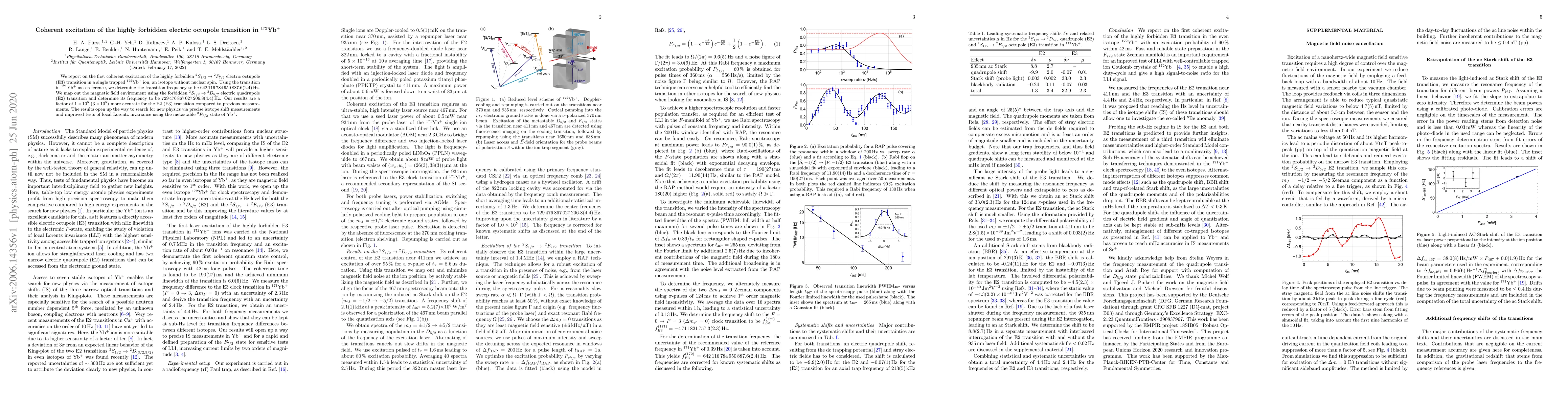 This paper reports the first coherent excitation of the highly forbidden electric octupole transition in a single trapped ${}^{172}$Yb$^+$ ion, achieving a frequency accuracy that is a factor of $1\times10^5$ better than previous measurements. The study also determines the frequency of the magnetic field environment using an electric quadrupole transition, paving the way for new physics searches and tests of local Lorentz invariance.