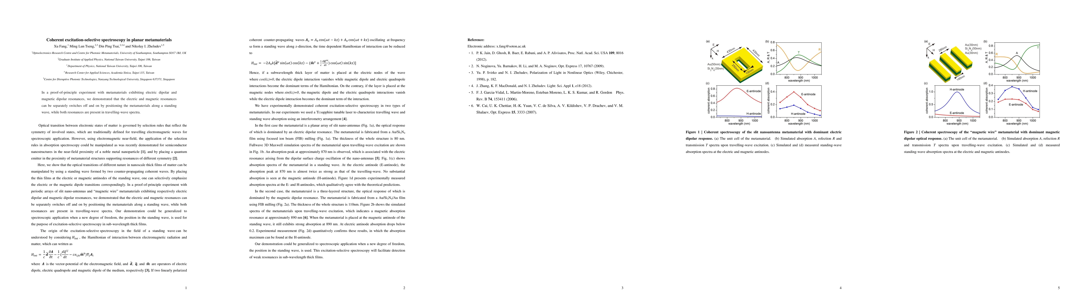 In a proof-of-principle experiment with metamaterials exhibiting electric dipolar and magnetic dipolar resonances, we demonstrated that the electric and magnetic resonances can be separately switches off and on by positioning the metamaterials along a standing wave, while both resonances are present in travelling-wave spectra.