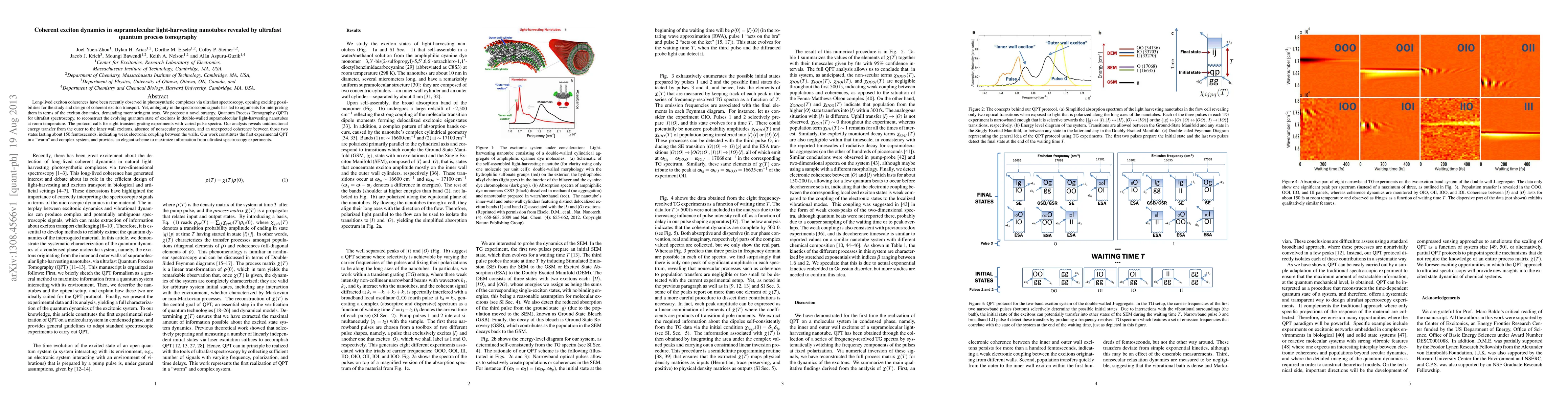 This paper employs quantum process tomography to study exciton dynamics in supramolecular light-harvesting nanotubes, revealing unidirectional energy transfer and unexpected coherence between exciton states, highlighting weak electronic coupling and providing a new method for ultrafast spectroscopy analysis.