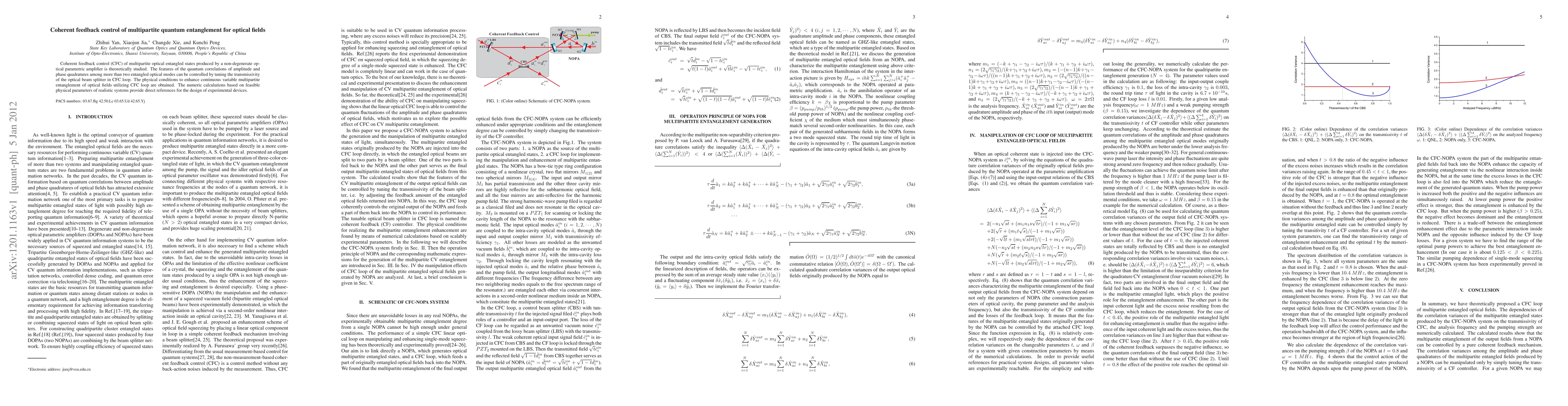 This paper explores the coherent feedback control of multipartite entanglement in optical fields generated by a non-degenerate optical parametric amplifier, demonstrating how quantum correlations can be manipulated by adjusting the optical beam splitter's transmissivity. It provides numerical calculations for enhancing continuous variable multipartite entanglement, offering practical insights for experimental setups.
