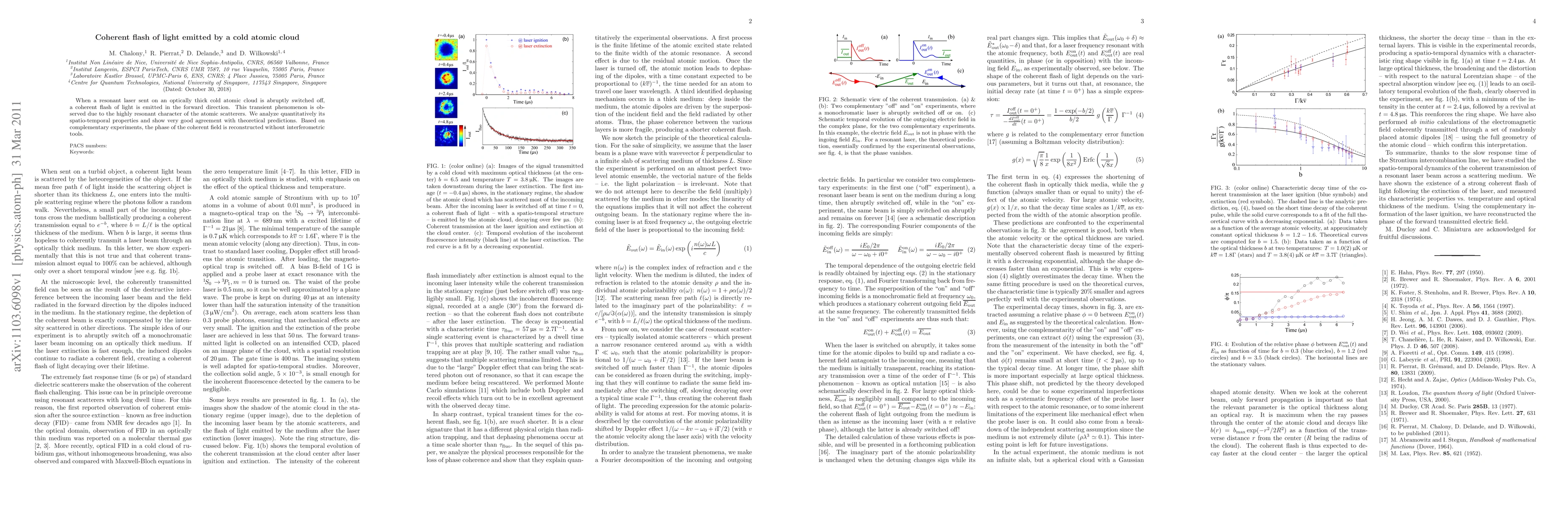 This paper investigates a coherent flash of light emitted from a cold atomic cloud when a resonant laser is abruptly turned off, demonstrating its spatio-temporal properties and validating theoretical predictions. The phase of the coherent field is reconstructed through complementary experiments without interferometric tools.