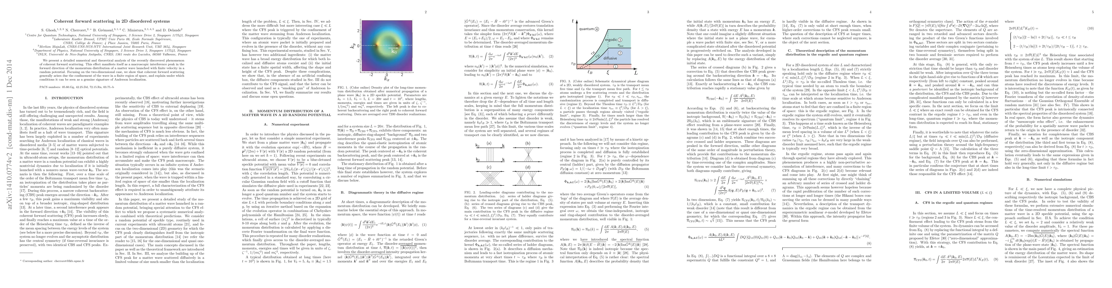 Two-line summary: This research explores coherent forward scattering in 2D disordered systems, identifying it as a macroscopic interference peak in the forward direction of momentum distribution. The study reveals that this phenomenon results from wave confinement and serves as a signature of Anderson localization under specific conditions.