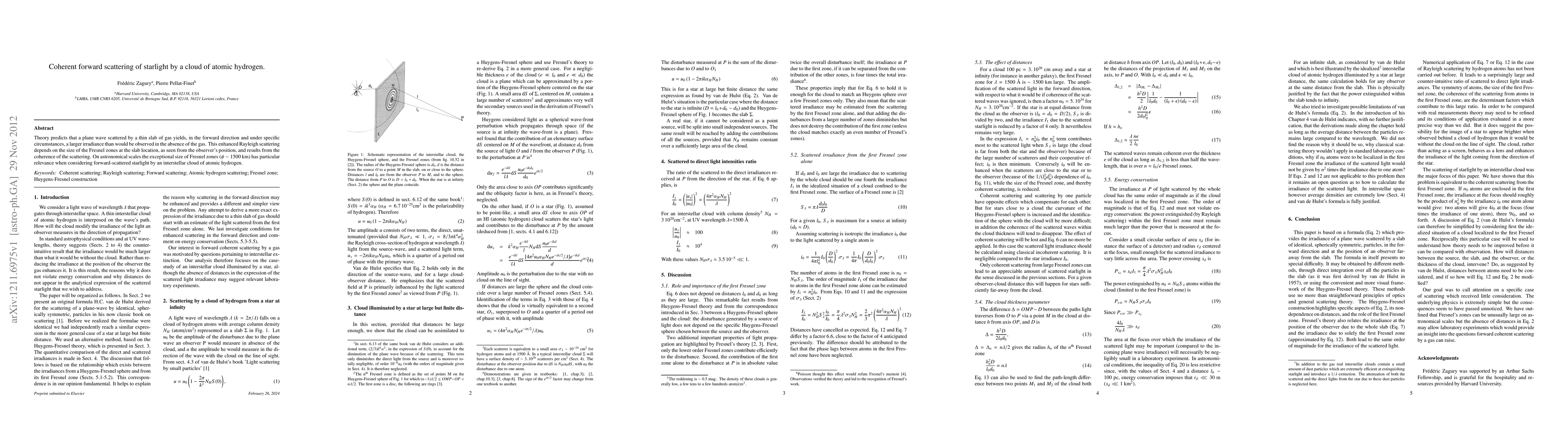 Astronomers found that a thin cloud of atomic hydrogen can enhance the brightness of starlight in the forward direction under specific conditions. This effect is due to the coherence of scattering and depends on the size of Fresnel zones at the slab location from the observer's position.